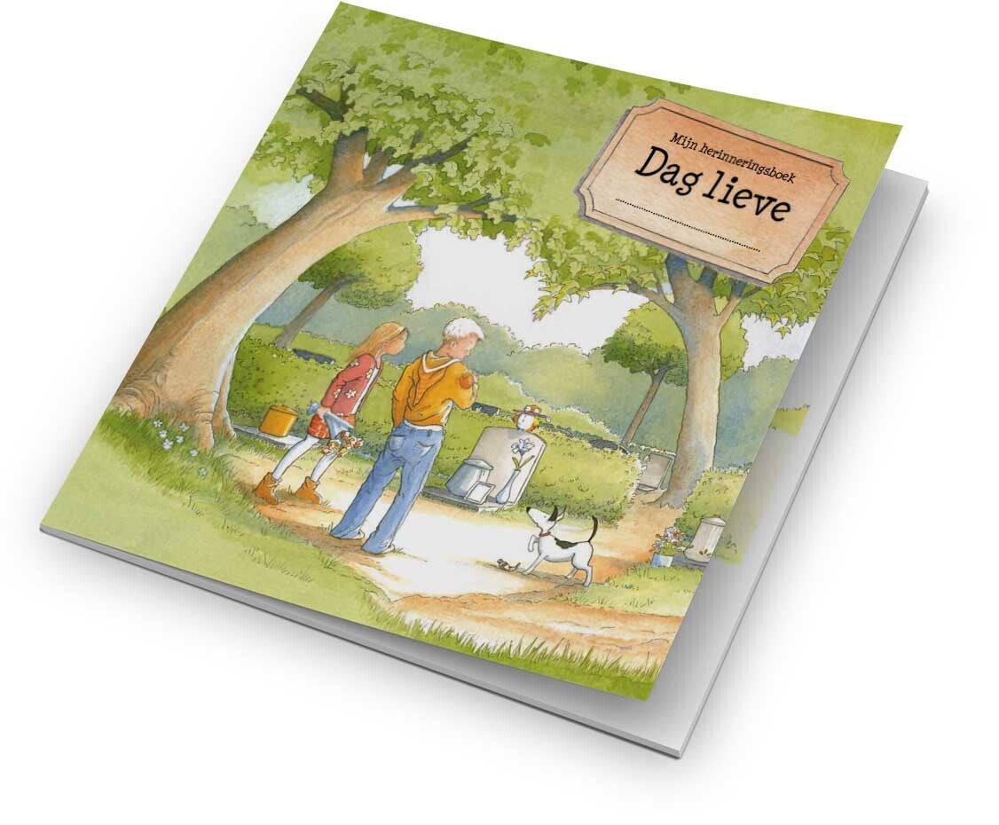 (zie afbeelding). Dit zijn liefdevolle herinneringsboekjes die kinderen helpen om op hun eigen manier afscheid te nemen en hun herinneringen vast te leggen. - Kleine, belangrijke taken: Kinderen vinden het vaak heel fijn om te kunnen helpen. U kunt ze een taakje geven, zoals het uitdelen van (lievelings)bloemen, het aansteken van de kaarsjes rondom de kist, het meehelpen met het sluiten van de kist, of het lopen voor de rouwauto uit.